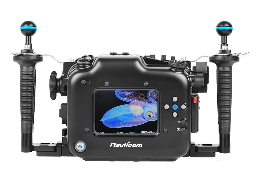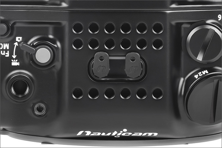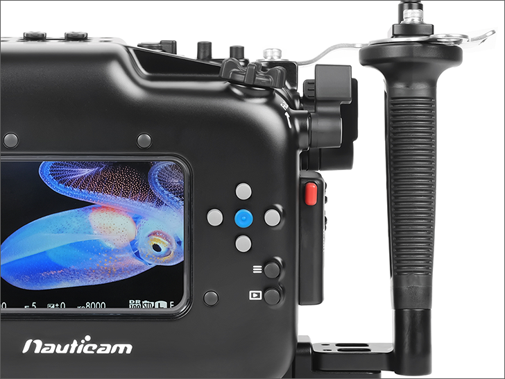 ![]() | ミッションコントロール コントロールは直感的に配置され、操作ボタン/レバー/ダイヤルは左右のグリップ近くに配置。水中撮影に必要な操作部にすばやくアクセスすることができます。ダイヤル部にはゴム製の指掛け溝が設けられ、レバー部はスムーズな操作性を追求して設計されています。 |